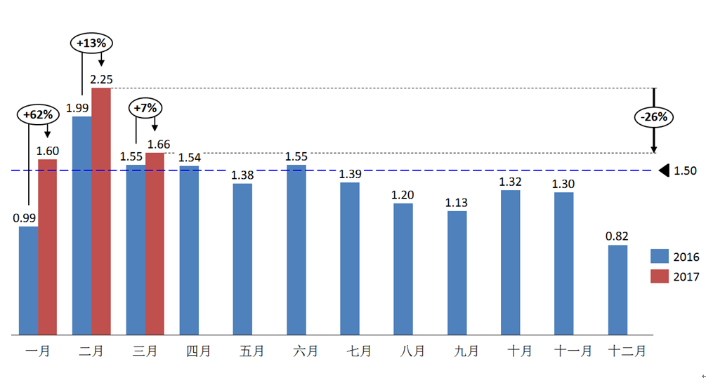 2017年3月汽車經(jīng)銷商庫(kù)存系數(shù)為1.66