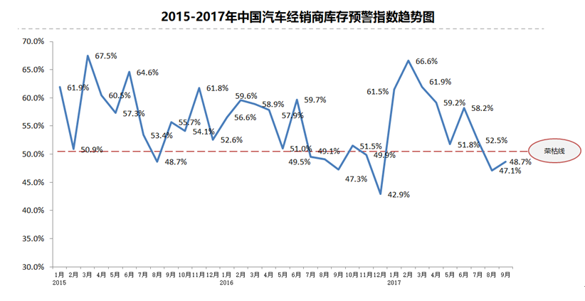 2017年9月份中國汽車經(jīng)銷商庫存預(yù)警指數(shù)為48.7%