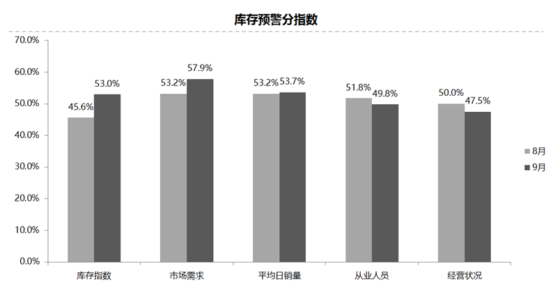 由于進(jìn)入第三季度末,部分品牌開始加大了壓庫力度,經(jīng)銷商庫存壓力較上月增加;部分地區(qū)經(jīng)銷商出現(xiàn)價格戰(zhàn),經(jīng)銷商利潤下滑。