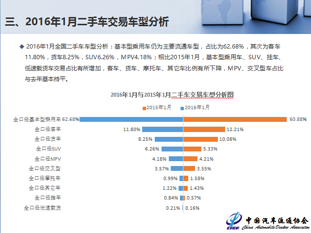 2016全國1月全國二手車市場分析