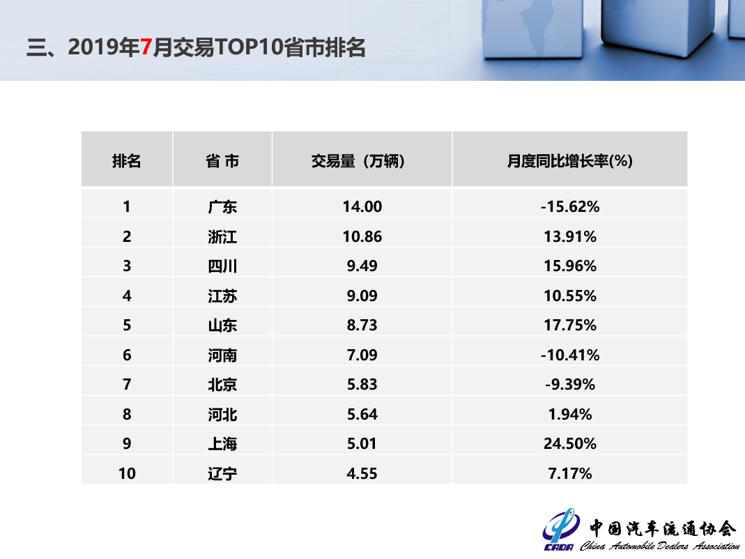 2019年7月全國(guó)二手車(chē)市場(chǎng)分析