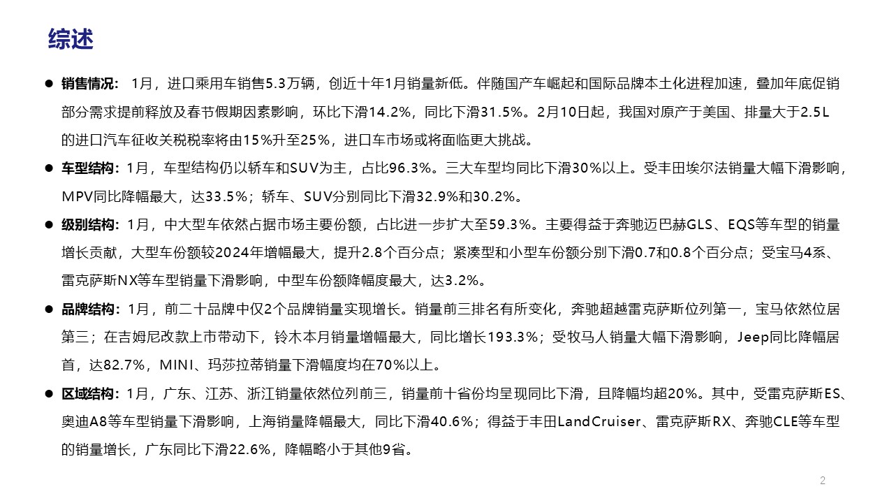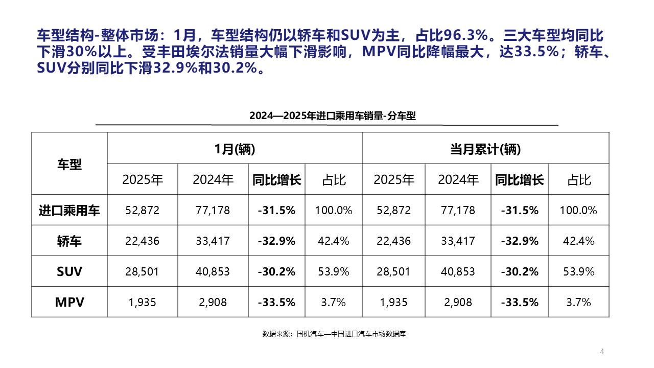 2025年1月中國進(jìn)口汽車市場情況