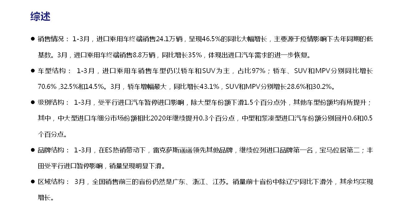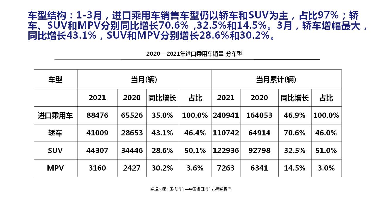 2021年1-3月中國進(jìn)口汽車市場情況