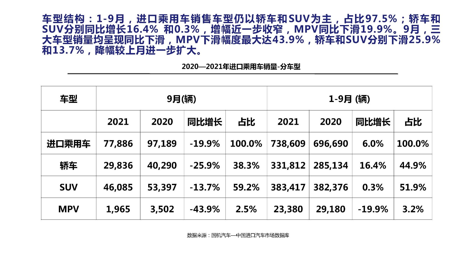2021年9月中國進(jìn)口汽車市場情況