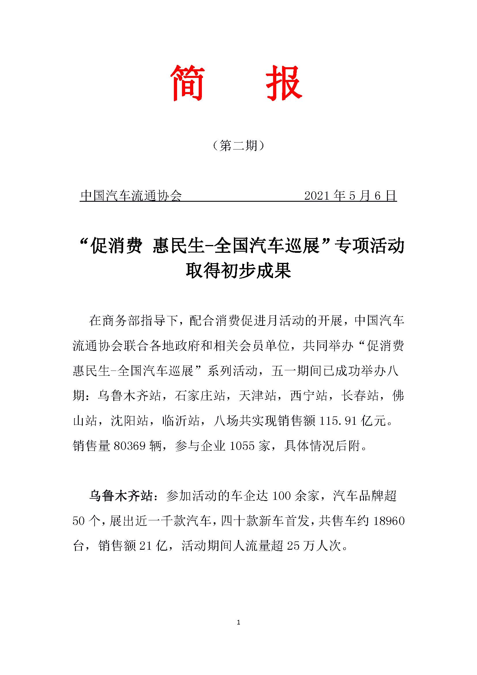 簡報(bào)“促消費(fèi) 惠民生-全國汽車巡展”專項(xiàng)活動(dòng)(第二期)取得初步成果