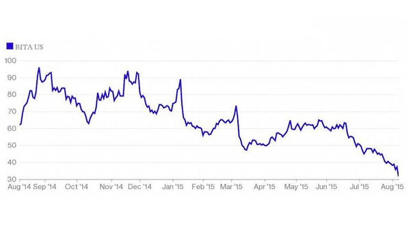 圖為易車網(wǎng)在美國(guó)股市的走勢(shì)
