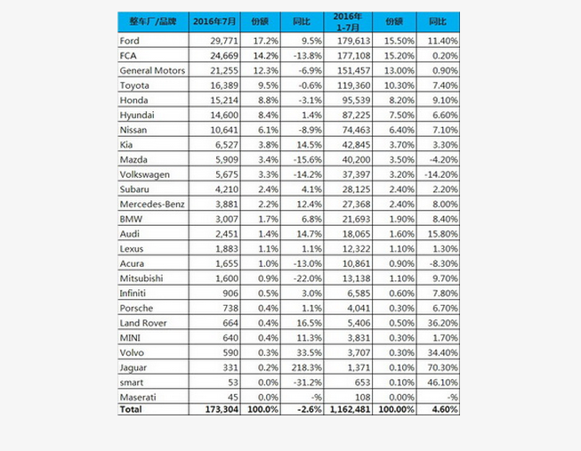 加拿大desrosiers汽車咨詢公司近日公布,加拿大7月份新車銷量173,304輛,同比下降2.6%。其中乘用車銷量59,225輛,同比下滑11.3%,輕卡銷量114,079輛,同比增長2.7%。
