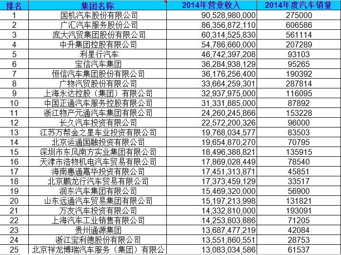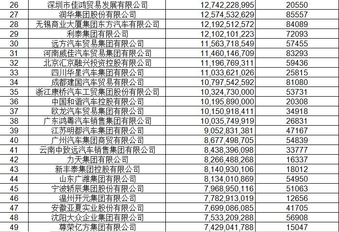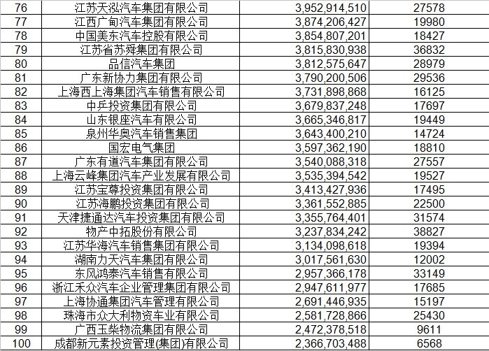經(jīng)銷商集團百強排行表