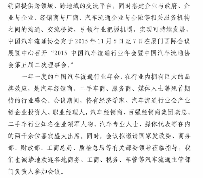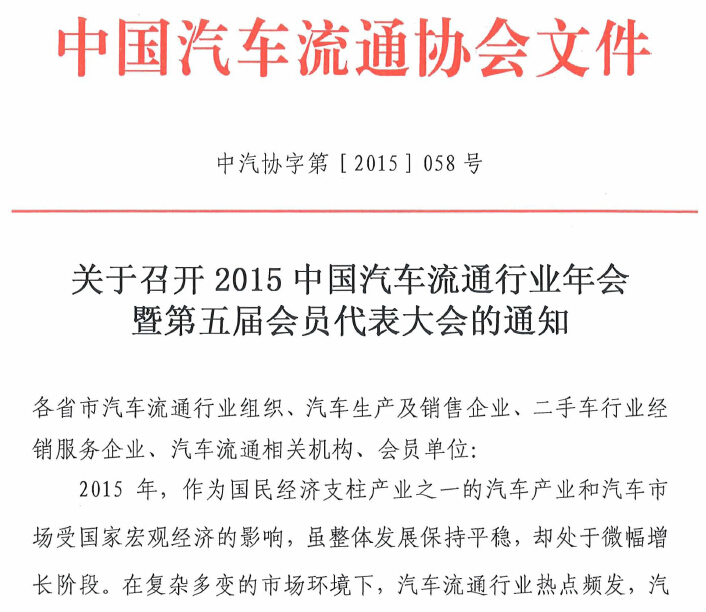 關(guān)于召開2015中國汽車流通行業(yè)年會的通知