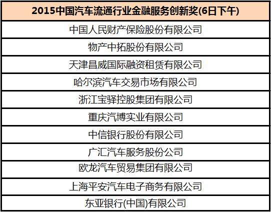 2015年度中國汽車流通行業(yè)金融服務創(chuàng)新獎獲獎名單