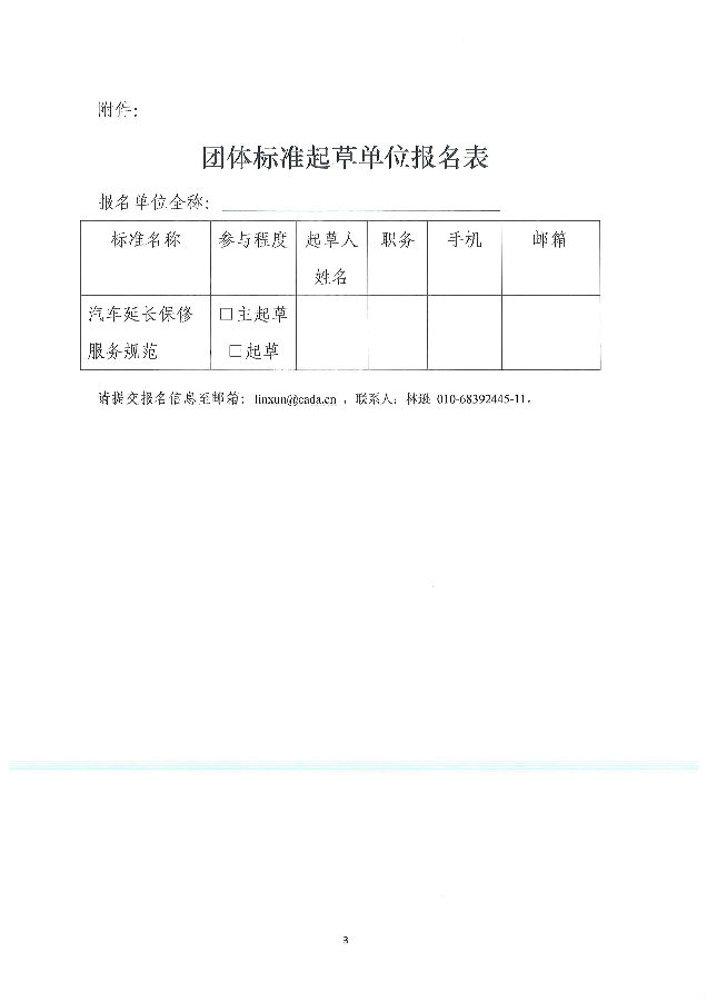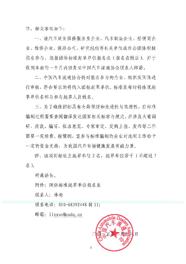 關(guān)于征集《汽車延長保修服務(wù)規(guī)范》團體標準起草單位的函