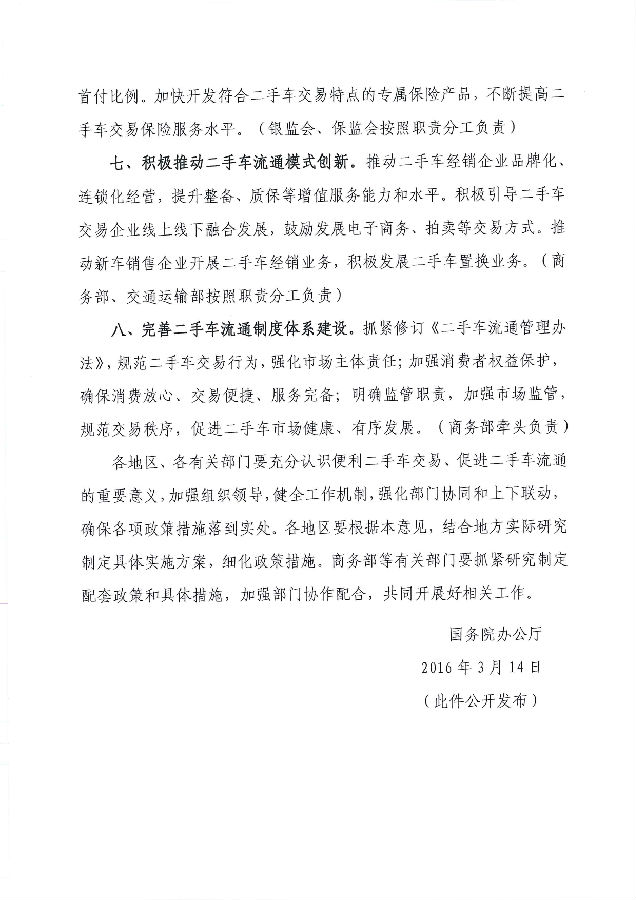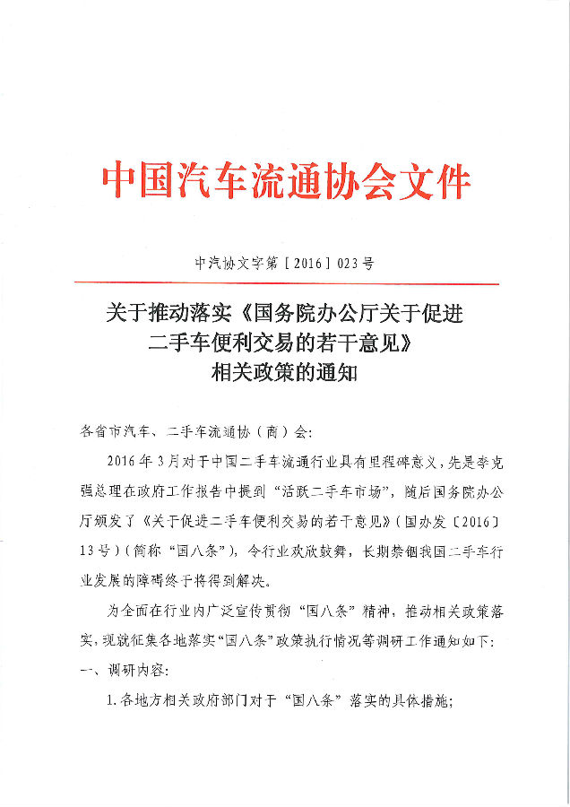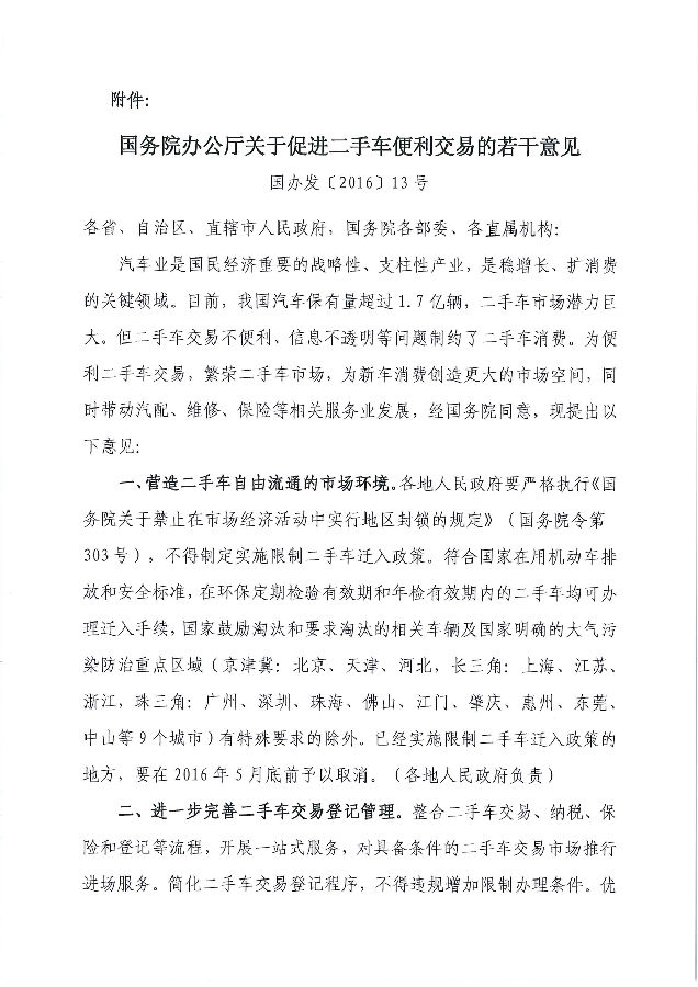 關于推動落實《國務院辦公廳關于促進二手車便利交易的若干意見》相關政策的通知