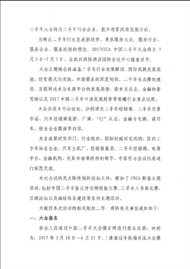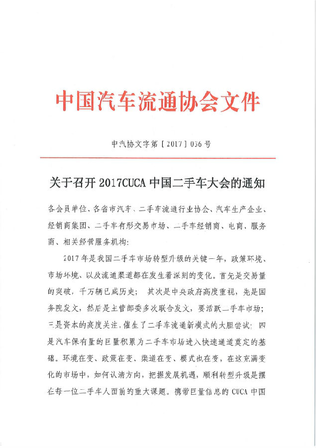 關(guān)于召開2017CUCA中國二手車大會的通知