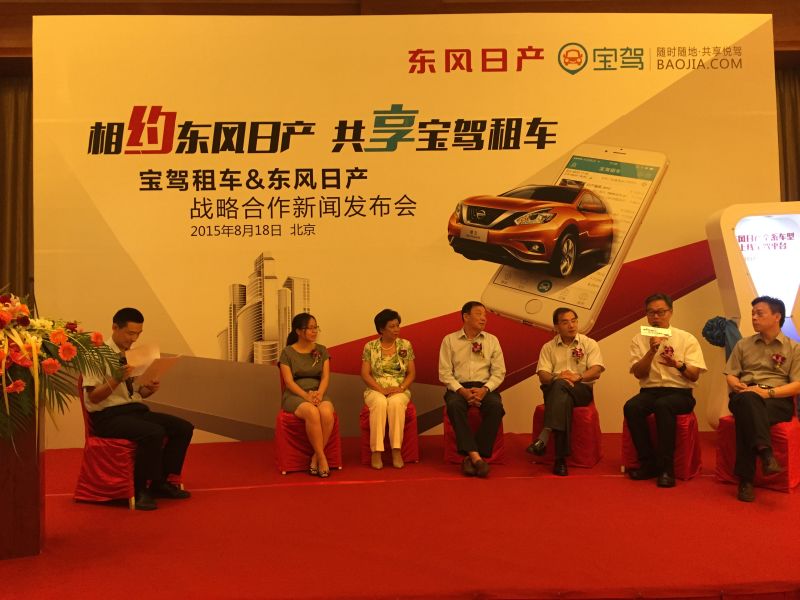 2015年8月18日,東風(fēng)日產(chǎn)乘用車公司與寶駕租車在北京召開新聞發(fā)布會,正式簽訂全面戰(zhàn)略合作協(xié)議。此次簽約意味著,未來雙方將在汽車租賃、新車上門試駕、舊車置換等市場展開全面戰(zhàn)略合作。