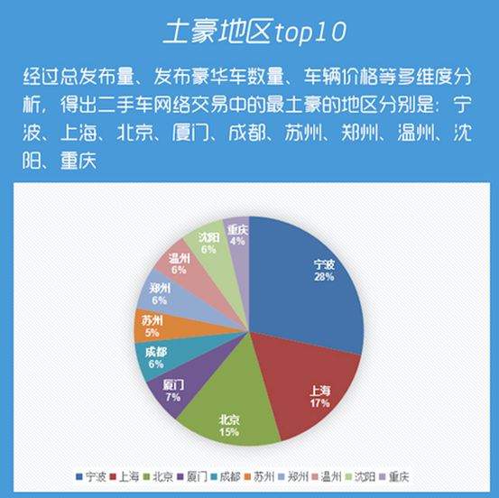 與6月相比,本月豪車交易城市變化相對(duì)比較大。前三名排名三個(gè)城市不變。本月新進(jìn)成都、蘇州、沈陽(yáng)、重慶。杭州、臺(tái)州、深圳、大連本月下榜