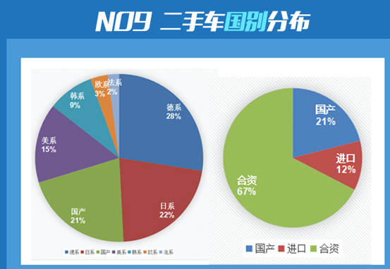 二手車車系分布較上月并未發(fā)生變化,7月各車系交易量排序與上月一致