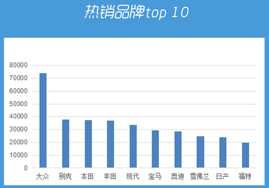 從熱門品牌大數(shù)據(jù)來(lái)看,每月熱門品牌幾乎無(wú)變化,7月top10中新進(jìn)福特,6月上榜的奔馳本月下榜