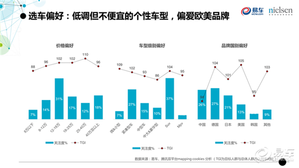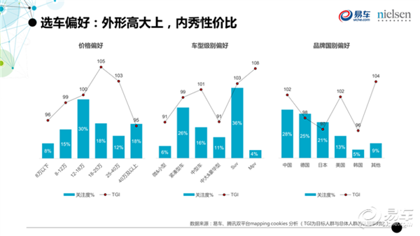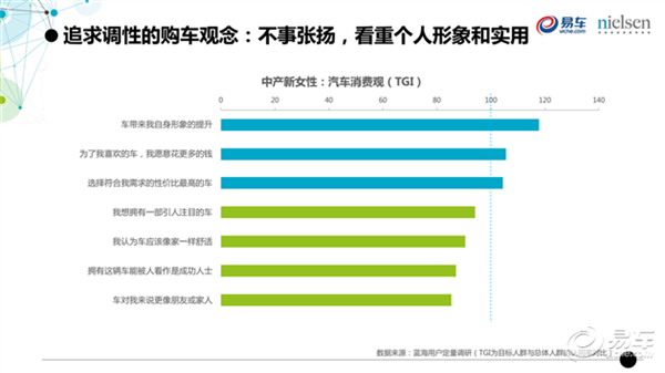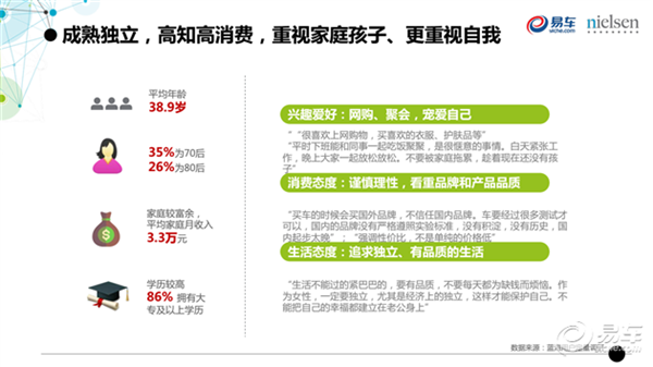 易車聯(lián)合騰訊、尼爾森,以海量大數(shù)據(jù)計(jì)算為基礎(chǔ),從人口屬性、車型訪問偏好、汽車消費(fèi)觀等方面對(duì)五個(gè)藍(lán)海用戶群體進(jìn)行了用戶畫像描述。