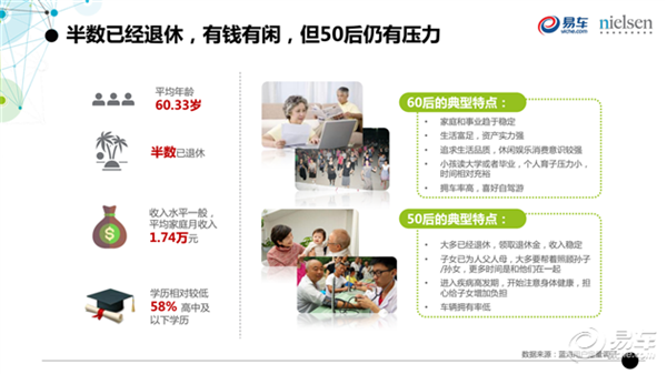相對(duì)其他四個(gè)群體用車彰顯自我和形象,多金老年族以滿足日常所需,如接送孩子、外出旅游,同時(shí)以性價(jià)比、舒適性、安全性為主。