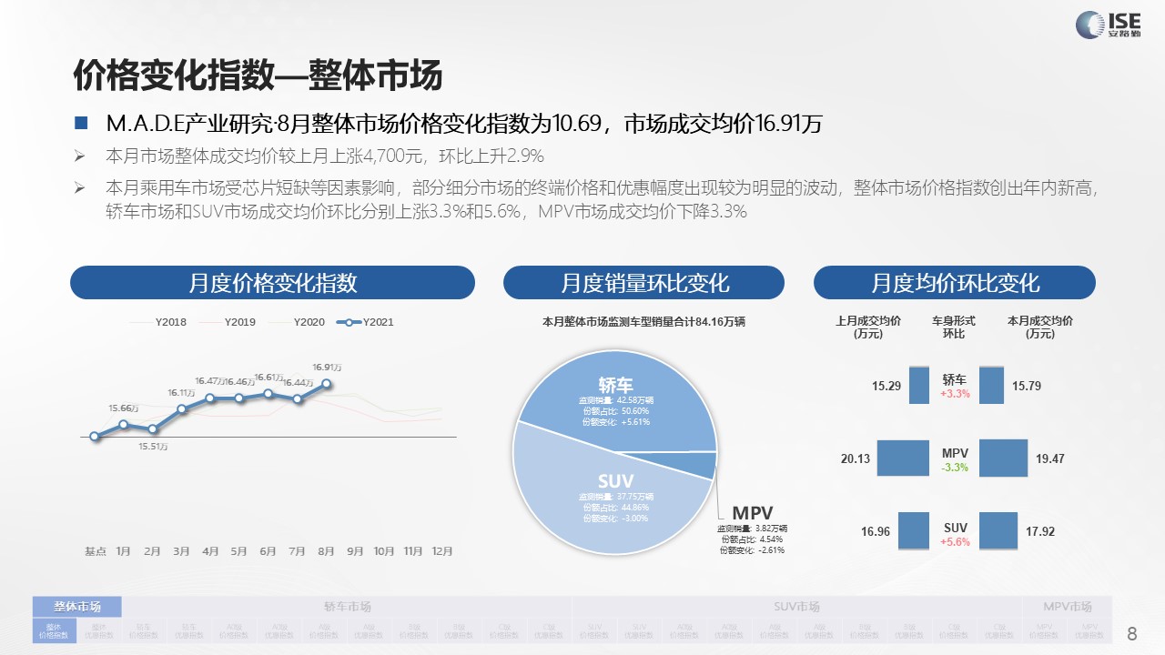 2021年8月M.A.D.E 產(chǎn)業(yè)研究?jī)r(jià)格指數(shù)走勢(shì)分析